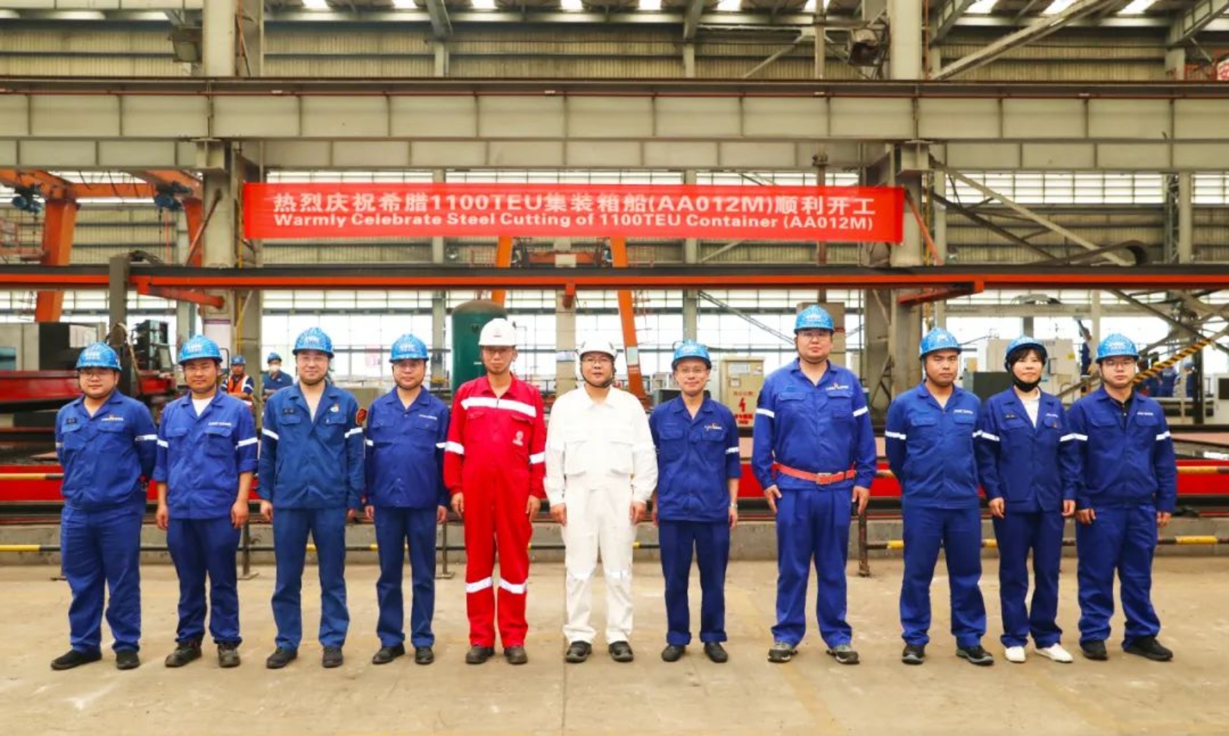 就在今天,中國船舶集團武昌造船為希臘船東Cosmoship建造的1100TEU集裝箱船2號船在雙柳廠區順利開工!至此,武昌造船承接的 6艘1100TEU集裝箱船已全部開工!