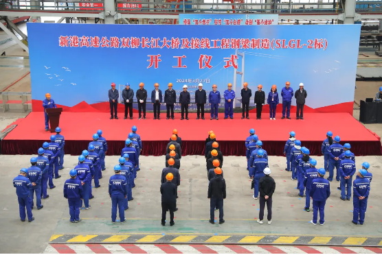 3月27日上午,中國船舶集團武昌造船承建的新港高速公路雙柳長江大橋及接線工程鋼梁制造SLGL-2標,在公司橋梁板單元智能化生產車間點火開工,標志著該項目進入單元件制造新階段。