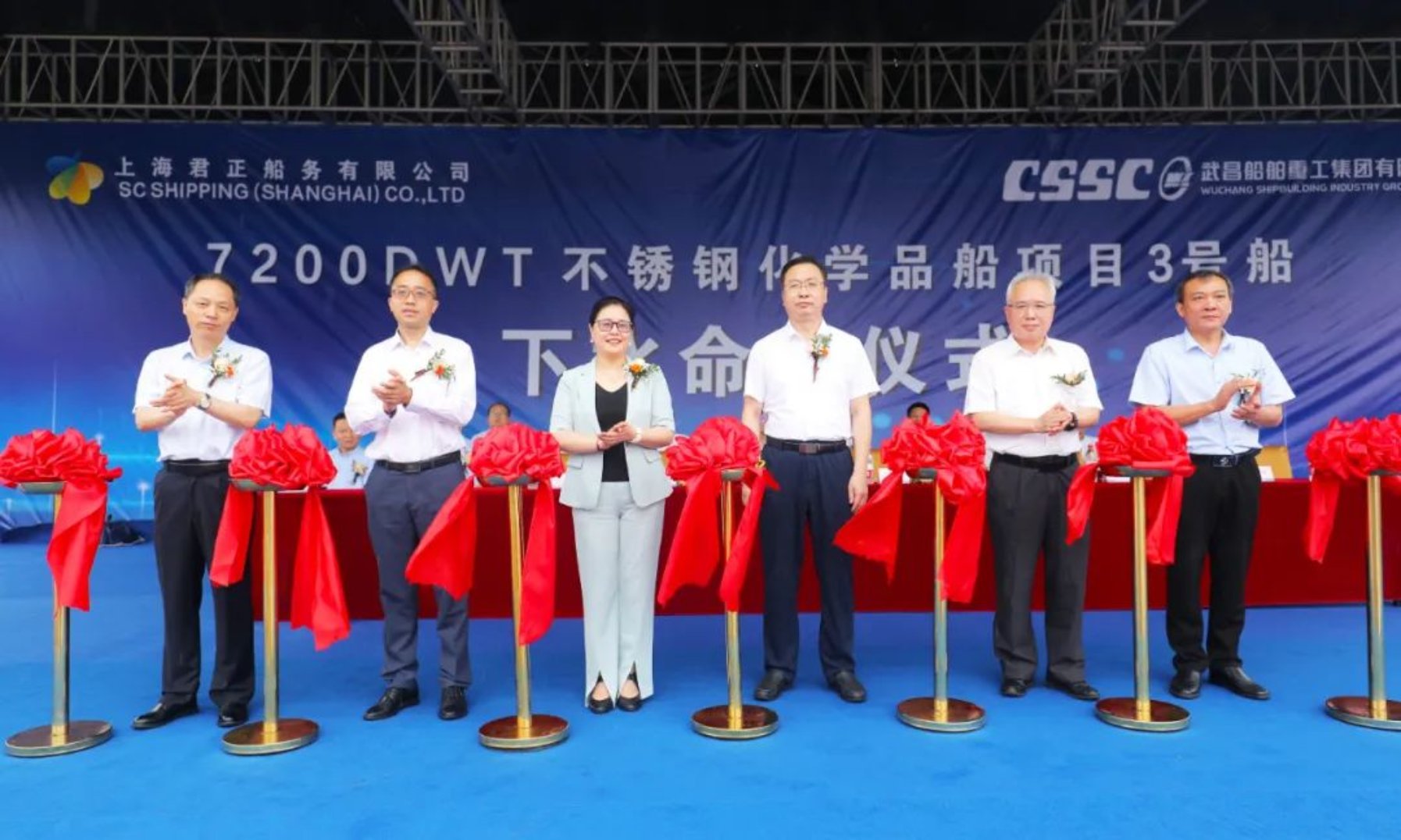 7月20日上午,在喜悅的鑼鼓聲中,由中國(guó)船舶集團(tuán)武昌造船為上海君正船務(wù)有限公司建造的第三艘7200DWT不銹鋼化學(xué)品船“月丹”輪在雙柳廠區(qū)順利下水!上海君正物流常務(wù)副總經(jīng)理吳貴榮,武昌造船黨委副書記、總經(jīng)理梁師清,中國(guó)船級(jí)社副總裁范強(qiáng),中海殼牌石油化工有限公司供應(yīng)鏈總監(jiān)陳鵬,上海船舶研究設(shè)計(jì)院副院長(zhǎng)周志勇等相關(guān)領(lǐng)導(dǎo)出席儀式并剪彩。