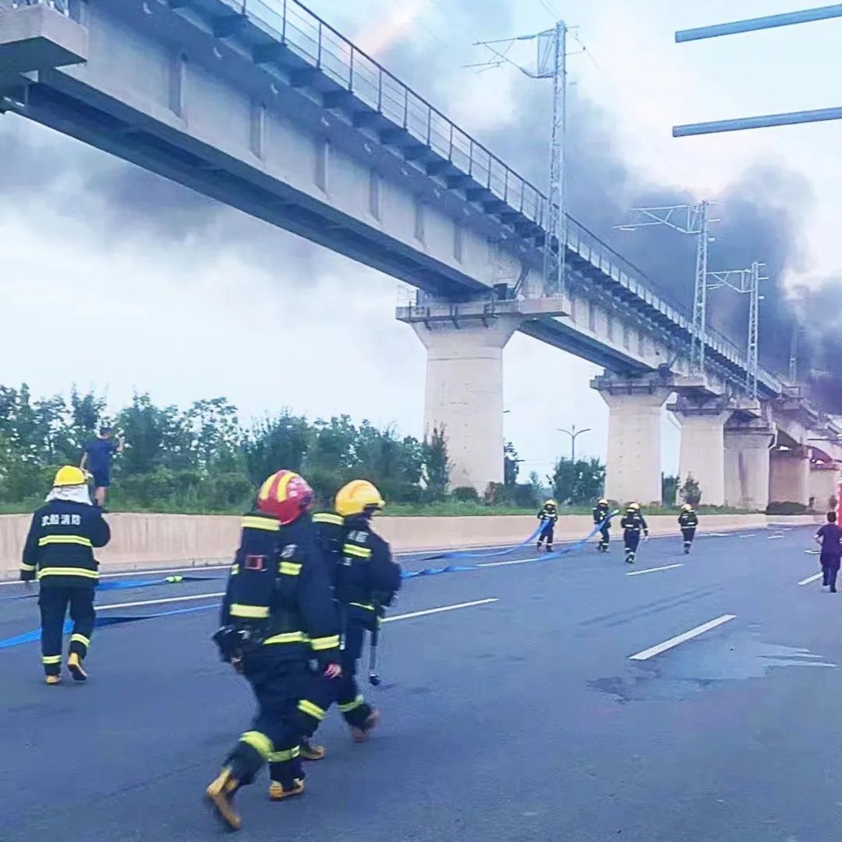 現場火勢很猛,輪胎燃燒的火焰烘烤著汽油罐體,隨時都有爆炸的可能。寬闊的馬路上沒有掩體,隊員們知道爆炸會傷及自身,但職責使命大于一切,敢于赴湯蹈火、不怕犧牲是消防隊員最基本的職業素質。