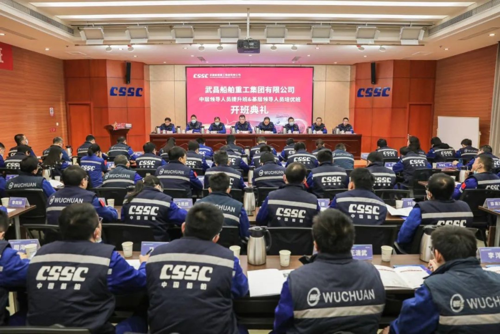 12月2日,武船首屆中層領(lǐng)導(dǎo)人員提升班、基層領(lǐng)導(dǎo)人員培優(yōu)班開班儀式在創(chuàng)新樓12樓武船講堂順利舉行。公司黨委書記、董事長姜濤,黨委副書記、總經(jīng)理梁師清,黨委委員、副總經(jīng)理田軍,黨委委員、副總經(jīng)理、總工程師唐瀅,黨委委員、總會計師陳仲明,黨委委員、紀委書記左照海,黨委委員、黨委工作部部長李建操出席開班儀式,開班儀式由公司保密總監(jiān)、人力資源部部長何道遠主持,中層領(lǐng)導(dǎo)人員提升班、基層領(lǐng)導(dǎo)人員培優(yōu)班共計96名學員參加開班典禮。