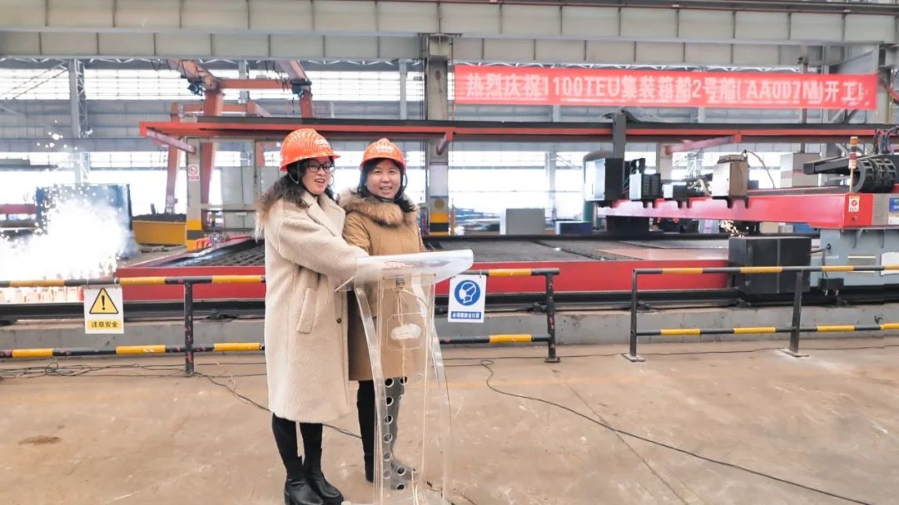 2月14日上午11時18分,中國船舶集團武昌造船為CA Shipping建造的1100TEU集裝箱船2號船在雙柳順利開工。