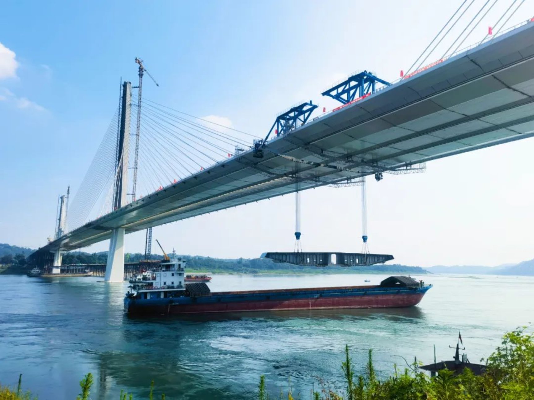 6月26日,由中國(guó)船舶集團(tuán)武昌造船重裝公司承建的瀘州長(zhǎng)江六橋成功合龍,瀘州長(zhǎng)江六橋是目前世界上在建最大公軌兩用三塔鋼箱梁斜拉橋,也是瀘州市重要的過(guò)江通道,當(dāng)?shù)厝嗣衤N首以盼的民生工程。