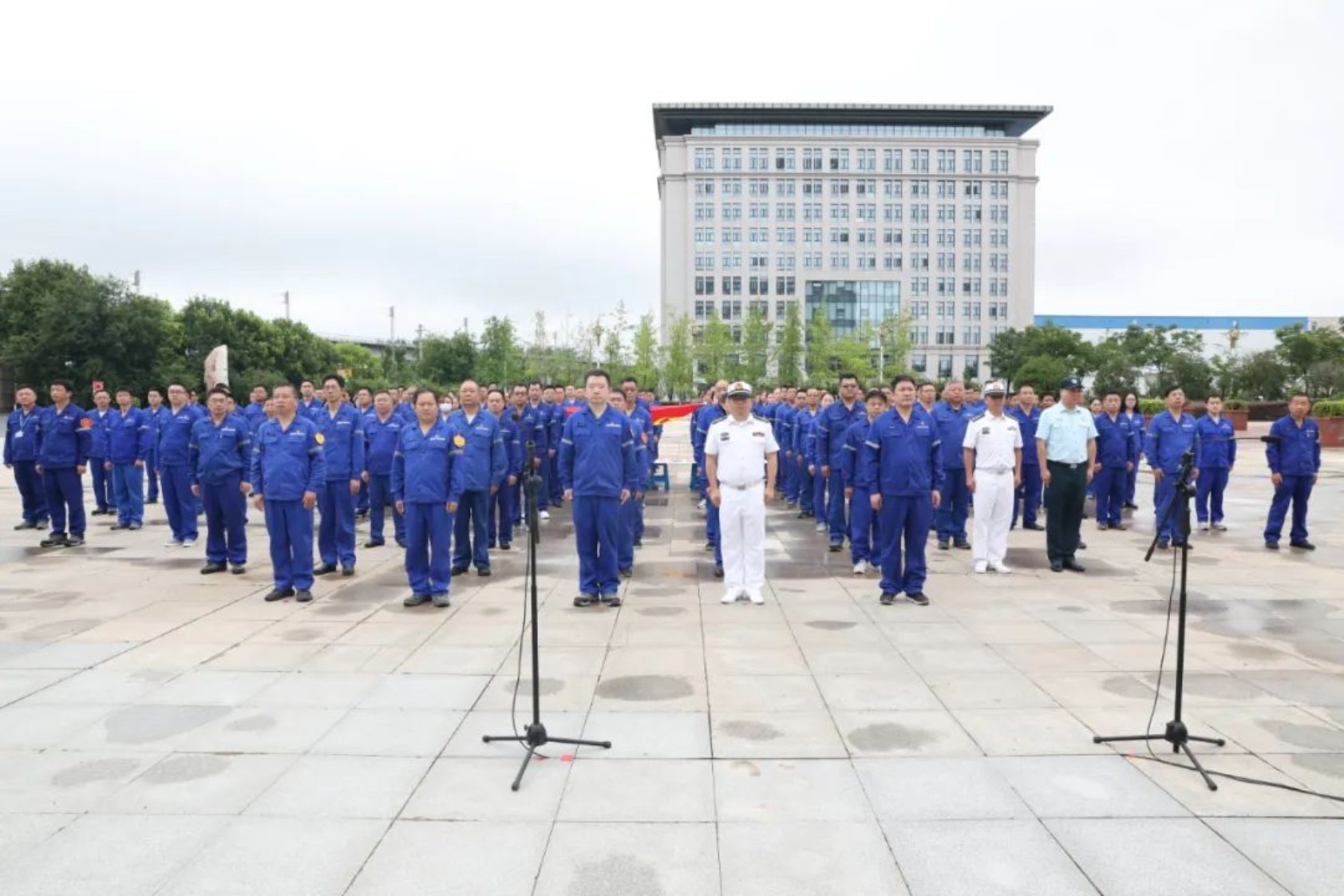 在公司偉人廣場舉行的升國旗儀式,公司領(lǐng)導、海裝駐武漢地區(qū)第一軍事代表室代表、各單位黨組織專兼職書記、黨員代表150余人參加。伴隨著莊嚴的國歌,五星紅旗、中國船舶集團司旗、武昌造船司旗冉冉升起,在場黨員干部們共同唱響國歌、行注目禮。
