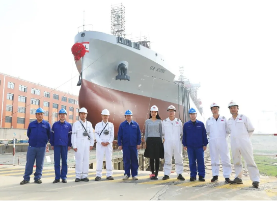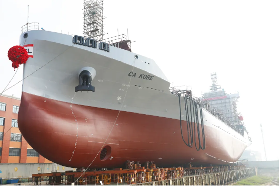 4月3日,由中國船舶集團(tuán)武昌造船建造的1100TEU集裝箱船4號船 順利下水!標(biāo)志著武昌造船為CA SHIPPING建造的1100TEU集裝箱船均完成船臺建造工作!該型船1號船已順利交付,2號船正在海試階段,3號船正在系泊試驗階段。