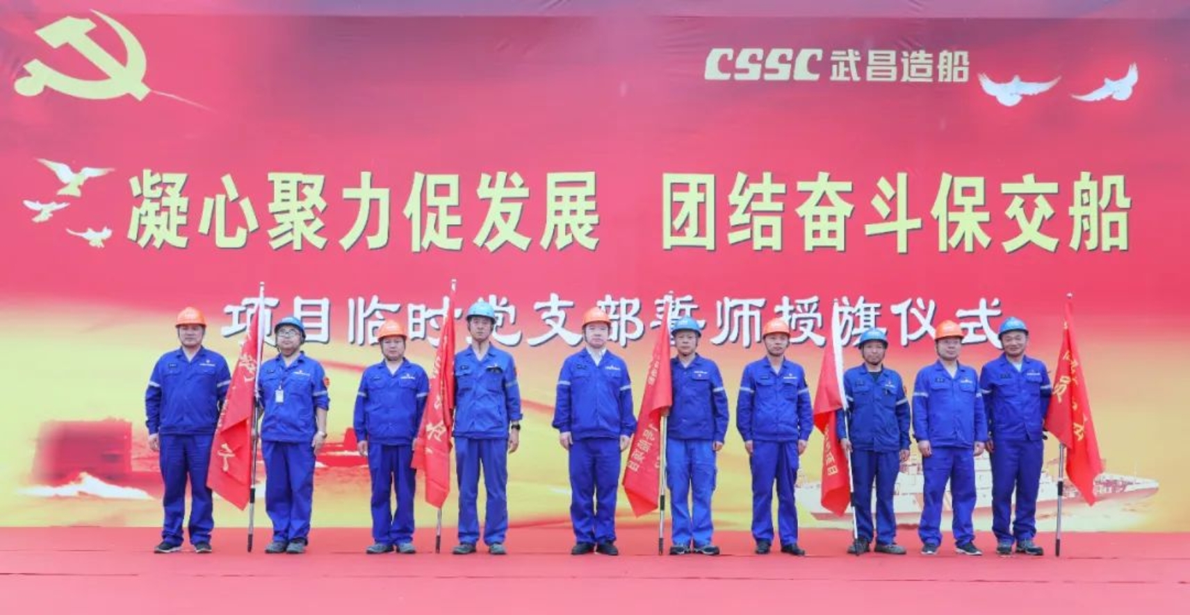 今年以來,公司黨委以大項目黨建為載體,推動學(xué)習(xí)貫徹習(xí)近平新時代中國特色社會主義思想主題教育走深走實,全力保障重點產(chǎn)品節(jié)點任務(wù)實現(xiàn),團結(jié)奮斗保交船成為公司上下的共識。在公司黨委的堅強領(lǐng)導(dǎo)下,公司成立了10個項目臨時黨支部,并由公司領(lǐng)導(dǎo)授旗。“月丹”輪項目臨時黨支部扛住黨旗份量,不負使命責(zé)任,在項目設(shè)計建造過程中,黨員帶頭、全員參與,充分發(fā)揮支部戰(zhàn)斗堡壘和黨員先鋒模范作用,圍繞節(jié)點目標(biāo)開展形式多樣的勞動競賽和黨員示范項目,學(xué)習(xí)踐行公司“企業(yè)文化核心理念”,堅定信心、錨定目標(biāo),齊心協(xié)力推進各個產(chǎn)品的建造工作。