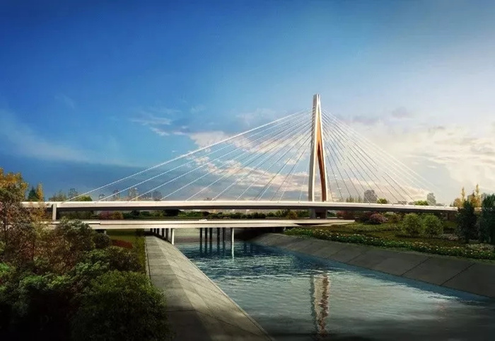 該項(xiàng)目位于鄭州市四環(huán)線西部(大河路-南四環(huán)),規(guī)劃為快速路,全長(zhǎng)21.6km,高架橋?yàn)殡p向八車道。項(xiàng)目南起西四環(huán)光明路口向南300m,北至西四環(huán)晨星路口向北160m,全長(zhǎng)5.95km。橋梁總長(zhǎng)300m,橋面總寬49.16m,主橋?qū)侏?dú)塔雙索面斜拉橋,采用梁高3.5m鋼箱梁結(jié)構(gòu)形式。