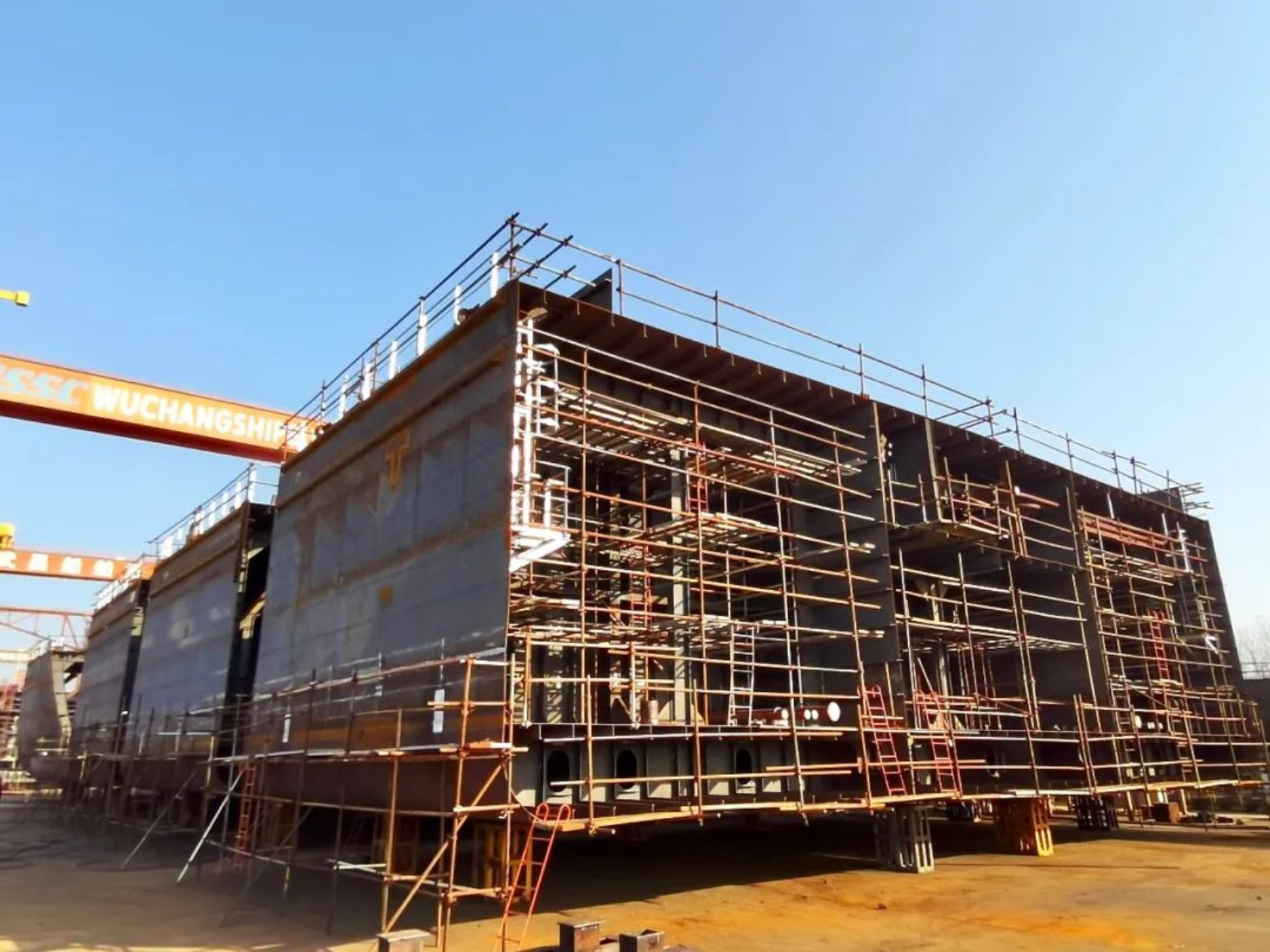 12月22日下午2點38分,由武昌造船承建的第15艘13000DWT甲板運輸船順利實現上船臺節(jié)點,比計劃時間提前5天,同時標志該船正式進入船臺搭載階段。船東、船檢以及相關單位負責人參加上船臺儀式。