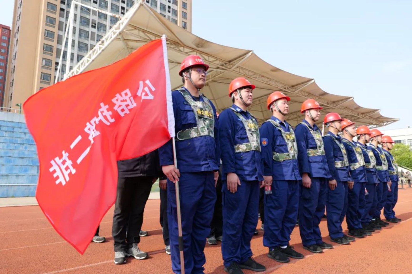 4月10日,風和日麗,軍旗飄揚,武漢市新洲區基干民兵點驗大會在中國船舶集團武昌造船體育場隆重舉行。新洲區委常委、區人武部政委陳勇、區人武部部長馮俊明、區人民政府辦黨組成員高擁軍、相關街鎮及高校武裝部長、武昌造船安保部有關負責人出席本次點驗大會。同時參加點驗大會的還有雙柳片區基干民兵 670名,其中武昌造船基干民兵 200 名。